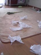 次男の幼稚園の入園が決まりました! 昨日の面談では、次男は全然ダメダメでした… 面談の部屋に呼ばれると、椅子に座らないどころか机の下に隠れて…園長先生に「おなまえは?」「(バナナの絵)これはなにかな?」「(赤いバスの絵)これは何色かな?」…全部答えられず、途中で出て行ってしまいました緊張していたのか、機嫌が悪くて家に帰るまで泣いていたのでした~そんな状態でも合格だったのでホッ。定員割れしていたそうなので、大丈夫だったのかな?長男といい、次男といい、きっとブラックリストに載ってるナ…明日入園費を払いに行ってきます~!そして 今日はちょっと目を離した隙に、次男と三男にティッシュを全部出されていましたしかも長ネギも…写真手前にはじゃがいもが転がっていたのですヨやれやれ、です