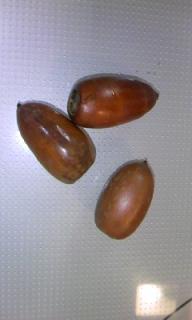 先日、長男を預けたときに、公園でたくさんどんぐりを拾ってきました「お母さん、帰ったらどんぐり食べたい!」え!どんぐりを食べる「…どんぐりはちょっとなぁ」「食べたい!食べたい!」仕方ないので少しだけ塩ゆでしてみました。↑カラを割ったところ。中は白いんですね。塩茹でしてみました。見た目は甘栗のような感じ。ゆで汁は茶色に変わっていました。そして長男試食「おいもみたい!」お芋?どれどれ…私もこわごわ試食。お芋…というより味はナッツです。そりゃそうか、木の実だしね。うん、食べれなくはないかな…と思っていたら、ピリピリ!舌がピリピリしびれてきました。長男も口にいれているうちに「オエッ」食べれなくはないけど、無理です。昔の人は食べてたんでしょうね~。もっと違う調理法だと美味しく食べれたのかな…