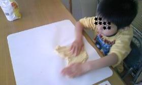 次男の通信教育のDVD(しまじろう)でパン作りのことをやっていて、次男がまたまた「パン作りたいパン作りたいパン作りたい~!!」と始まった。なので日曜日にだんごたちとコネコネやりました。DVDに教わったとおり次男は「イースト菌は?お砂糖は?小麦粉は?」とちゃんと覚えたようです。次男コネコネこの後一次発酵きれいに丸めて…あ!この後生地を2回三男にもって行かれて…何とか一次発酵後、みんなで形作りをすることに。だんごたちに形作りを任せたらすごいことになったなぁ…左端2つのロールパンの形は私です二次発酵を済ませて表面に卵黄を塗ったものです。焼けました。みんなくっついてしまいました。焼き色が薄かったかも?形はともかく、卵も入ってフワフワで、みんなで美味しく食べました