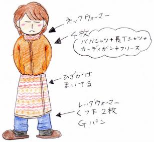 昔から冷え症で寒がりで、もう何年も足先のしもやけに悩まされる私。おしゃれどころの話ではない。家の中での格好を絵で披露しま~す。最初は誰かに見られたら…と思っていたけどもうすっかり慣れて、ゴミ捨てくらいなら全然出れる!女を捨ててると言われようと…