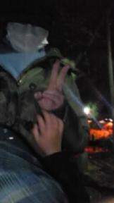 我が家は毎年、年末年始を旦那の実家で過ごしますそして年を越す前に年越しそばを食べてから(大人だけ)だんごたちを起こして、夜中の初詣に行くのです。もちろん、あまりの寒さと眠さにだんごたちは「抱っこ~」とせがんで震えていたのですが、成長とともにその辺は楽になってきました。長男は、暑さ寒さに鈍感なので、上着を脱いでしまいます 夜中なのに人、人だらけの神社です。出店もたくさん出ていて、子供もいますが若~い人ばかり。いろんなところで盛り上がっています…。神社に来て、出店も楽しみですが、まずすることはお参りに並びます。ここが一番寒い私は超冷え症で、足は毎年しもやけなので腰とおなかと足にカイロ、ズボンの下にもう一枚履いて、靴下2枚にレッグウォーマー履いて、マフラーにマスクに帽子を深くかぶり完全防備です。もう誰だかわからん状態ですそんな私を次男が撮ったのがこれです左のマスクのピースしてるのが私、その下の手はたぶん三男。…そして私の腕の後ろにはライトが移っているのですが…このライト周辺、なんだか顔に見えるのは私だけでしょうか??元旦からこわ~い!!この後、本厄だったこともあり、祈祷してもらいました
