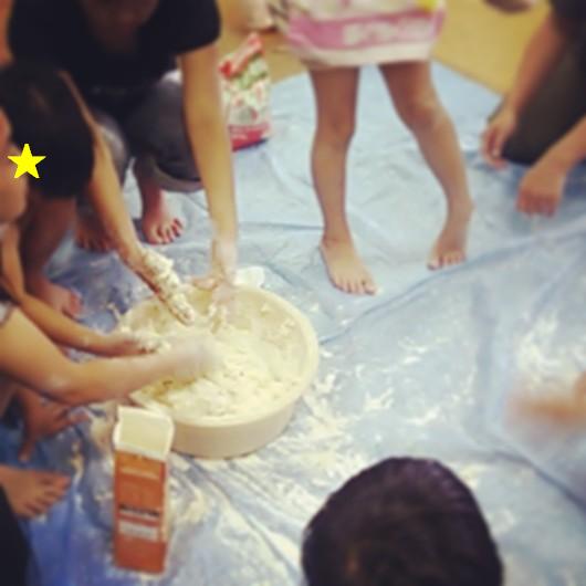 6月2回目は、小麦粉を使った制作をしました。サラサラの粉の感触を確かめて、水を入れ、どろどろに。塩やオイルも混ぜ込み、程よい硬さの粘土にしていきました。うひゃ~!と盛り上がる子、いやだーーー!と言って触れない子、黙々とこねる子、、、様々でした。たくさん感触を楽しんだ後は、この粘土を使って、お弁当をつくりました。最終的にみんな触って制作することができました。土曜日の様子水曜日の様子粉だらけ!私も楽しかったです!粘土をこねるのに、ついつい本気だしてしまい、一人汗だくでした。では、みんなのお弁当です!土曜日水曜日面白いものがたくさん出来ました!!おまけで、むにむにくんもつくりました!小麦粉を入れた風船のおもちゃです。大きい子が小さな子のヘルプをする場面も有り、だんだん、みんな慣れてきて、いい雰囲気になってきていると感じます。今回もありがとうございました!7月は、土曜日チーム:6日、27日水曜日チーム:10日、24日です。体験希望の方は、希望曜日の開講日にお申込みください。費用は1500円です。asobiyama@gmail.com までご予約ください。皆様のご参加をお待ちしております。 造形アトリエあそび山 橋本