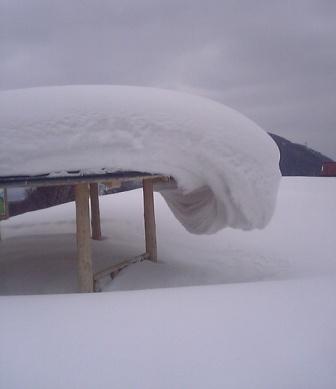 この間、姪っ子と雪遊びしたときに近くにあった休憩所の屋根に雪が地層のように積み重なってました叩いたら落ちそうやったけどびくともせ~へんかった>.<雪の層☆