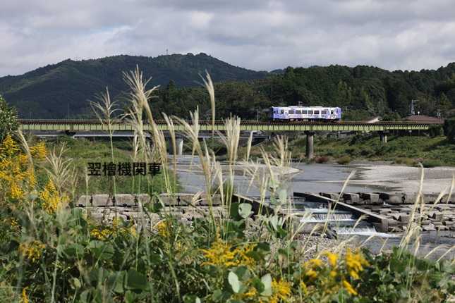 天浜線太田川橋梁も秋の風景になって来ました外来種で一時は花粉症の元のように言われた「セイタカアワダチソウ」今ではススキと肩を並べる秋の野草となりました