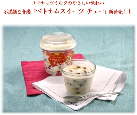 一時ナタデココやタピオカのブームがありましたね。やはり熱いアジアの国のデザートと言うこともあり、これから暑い季節にはピッタリ 普段のデザートや飲み物を、その食感が固さのある弾力感のコラボレーションで、また違う異色のデザートにしてくれます それがまた身近に味わえることになりました それが・・・・ 175g 230円でくせになるおいしさを実感できます ぷるっとしたココナッツミルクゼリーと蒟蒻入りタピオカが 甘すぎない味です ベトナムスイーツ チェー は丸美屋のホームページからhttp://www.marumiya.co.jp/recommend/che/index.html