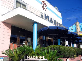 三崎から国道134号を葉山方面に行に向かい、車で走ること40分くらい(道路状況によります)に国道沿いに海の見渡せるおしゃれなレストランがあります。立石駐車場が見えたらすぐ右側です(逗子方面からだと左側)に画像のレストランが有ります。何となく敷居が高そうですが、店員さんがとても明るくて親切です。入り口にはマーロウ自慢のビーカーに入ったプリンが陳列されています。種類も沢山ありチョッと高価ですが、食べる価値があると思います。 早速お目当ての「渡りガニのトマトクリームスパゲティ」を注文、お薦めのオリジナルサラダはいかがですかと聞かれましたが、それは次回のお楽しみにします。 ホームページで内容は知っていましたが、どれほどの物かが楽しみでした。しばらくして運ばれてきたのがご覧のパスタです。よくホームページの画像用に料理を写し、実際に頼んで見たらガッカリということが有りますが、ココは画像どうりのボリュームでした。まずは2口ほどパスタを食べて、濃厚はソースのうまさに感激、画像には無いですが蟹を切るはさみが付いて来たので、せっかくなので蟹の身をほぐすことにしました。ココからが大変、画像には蟹の甲羅と足が見えていますが、何せ蟹一匹丸ごと入っているのでパスタに絡んでいて、次から次と蟹が出てきます。パスタの中から取り出してさばき切るまで20分以上かかりました。ばらした蟹の小皿には、最後にお絞りを甲羅の頭に乗せて温泉気分にしてあげました?やっと落ち着いて食べる事が出来ます。少しパスタは冷めてしまいましたが、蟹肉とパスタと濃厚なソースがたまらなく美味しかったです。今回使った画像は マーロウさん のホームページから御借りしました。詳しくは下記を見て下さい。・南葉山のオシャレなレストラン マーロウのホームページ