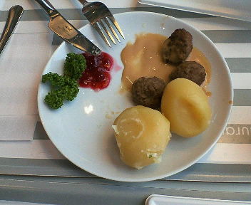 スウェーデン家具のIKEA船橋 にある「フード@IKEA」で初体験をしました。広い展示フロアの2階にフードコートとしては、かなり多くの席が用意されていてゆっくり時間をかけてくつろげる空間です。そこはスウェーデン料理がメインでファーストフード感覚で食べれます。何故かお薦めがミートボール\495(5個), \650(10個), \ 795(15個)が選べますが、僕は5個にしました。ミートボールが初体験?と言うかも知れませんがまだまだ、画像で見ていただくとミートボール&ポテト&ソースがわかりますが、もう一つ赤いジャムがそえてある事がわかると思います。何故ジャム?何に付けるの?パセリに付けて食べても料が有りすぎ????まさかミートボール?でもソースがついているし?としたらポテトしかない。だまされたつもりで付けて口の中へ、「うーん」始めてなので美味いとはいえないけど、これも有りかなと思えました。ジャムが少し酸っぱくてポテトと一緒に食べると、ポテトの甘さが引き出されました。何度も食べているうちに全部食べてしまいました。これがスウェーデン料理なら初体験でした。ミートボールは普通でした。デザートにプリンセスタルトを食して見ました。中はチョッと甘めで上の緑色がメロンサワー風でその酸っぱさで甘さを抑えてくれます。これはお薦めです。ちなみにカレーや牛丼も有りますし、コーヒー&ドリンクは最初カップを購入して後は飲み放題です。展示フロアを見た後でゆっくり気兼ねなくコーヒーブレイクもいいです。