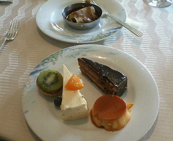 ディズニーシーにあるホテルミラコスタの地中海料理 オチェーアノに行って来ました。この日は天気も良くて、なかなかのランチ日よりです。 予約を入れていた1時数分前にお店に入り、スタッフの方の案内でテーブルにつきました。今回はコース料理にし、ゆったりと時間を過ごします。ランチの場合ブッフェもコースも値段の差はないのでお薦めです。たくさん食べたい方はブッフェをお薦めします。前菜、スープ、メインは魚か肉、最後にデザートといった感じでそれぞれ数種類から選択して、お料理は運ばれて来ます。今回選んだ中で、彩り野菜のパスタがありグリーンパスタに赤と黄色のパプリカが添えてあり、これがいい味を出していました。お肉は鴨肉があり注文しました。骨付きの鴨肉で程よい甘辛さが良かったです。最後にデザートですが、こちらはデザートブッフェにしていただき、いろんな種類をいただきました。というかこれがメインかと思うくらいデザートを官能しました。二枚目の画像は見た目汚いですけど、ティラミス、モンブラン、チーズケーキにイチゴのムースです。まだこの他にもアイスなど有りました。
