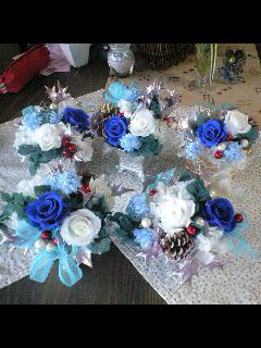 このアレンジのなかでも、私はプラチナピンクの柊がお気に入り