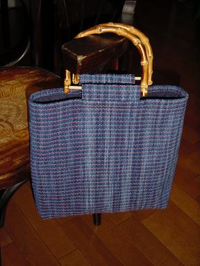 本日は小五女子のために一日費やしてしまいました。台風で学校行事のサマーキャンプが中止になりがっがりしていたので、台風にもかかわらずお友達を呼んで映画に連れて行きました。本来ならば今日は ”がむしゃらに織る”という日だったのに・・でもがんばりましたよん夜8時ごろから黙々と途中まで作ってあったものの仕上げ作業に入り只今2つ出来上がりました!!持ち手をちょっと変えてみました。これは、着物の裏地です。縦糸に色糸を使って模様を出しました。昨日の黒と色違いかな?そしてこちらは結構お気に入りのカラフルバッグです。こちらはA面。そしてこちらはB面です。2枚の布を織って縫い合わせるので柄違いになることが多いです。柄を合わせるのは面倒くさくて・・・そして今日中三女子がデザインをかえてくれてリニューアルサイトになりました。わたしがやったら3日かかって失敗して・・なんだろうな。中三女子ありがとう。でももっと勉強もして!