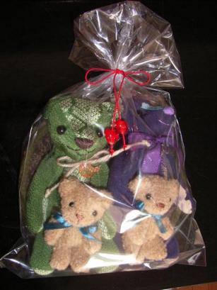 先日のまりぃまむさんのベアーちゃん今朝まりぃまむさんがわざわざ家に届けにきてくださいました!!まさにお嫁入りって感じ!!そしてこんなにかわいくラッピングされていてしかも、もう子供まで産まれている玄関に飾る前に撮影会!!と思ったらてっ てっ てっ てっ・・「わ~~モグちゃんのニオイするぅ~~」しかも誰が並べって言った撮影できないから早くどいてよ!!ってことで気を取り直してちりめんくまさんは玄関に、ちびクマちゃんはPC周りに飾ろうと思っています!!そして今日はリンパマッサージに行ってきました!手、足、顔、肩とフルコースでやってもらい、体から悪いものがどぼどぼと流出・・しかしながら、その後のランチで「ベルギービール」を堪能♪せっかくすっきりしたところだったので、また足がムクムクしないように今日は1杯で我慢・・・気持ちよくて至福の時+美味しくて至福の時・・の1日でした!!