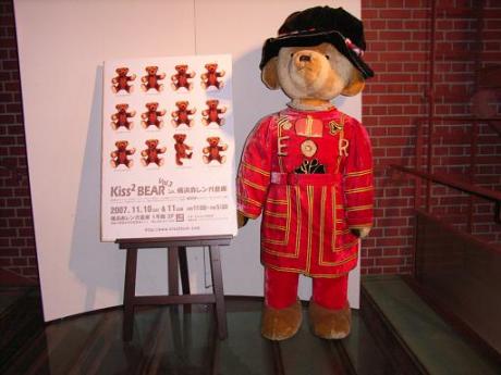 いつも遊びに来てくれるまりぃまむさん実はご近所のワン友 「ヨーキーのモグちゃんのママ」なんですご近所ワン友って毎日のようにお会いするけれど、結構「苗字」とか知らないし、とってもよくワンコのお話しはするんだけど、何処に住んでいて、何をやっていて、どんな人なのかを知らないことが多いんですモグちゃんのママもず~~っとワン友ということで仲良くしていただいていたんですけどある日突然ひょんなことからモグちゃんのお家のお姉ちゃまが実は我家の中一女子と同じ学校!!ということが判明その日から「モグちゃんママ」から「同じ学校の先輩ママ」に昇格そしてさらにお話していくうちに実はテディーベアを教えていらっしゃる「先生」だということがまたまた判明そうそう!モノ作りの先輩だったのでびっくり!!だったのですそして、今日横浜の赤レンガ倉庫でテディーベアのイベントがあり同じくワン友のレヴィちゃんのママと一緒にモグちゃんママ・・もとい・・まりぃまむさんのテディーベア・ワールドを見てきました!!あ!!まりぃまむさん!!こんなところでお出迎え??と思ったらくまさんでした!!ヽ(´~`; ォィォィ まりぃまむさんのブースはこちらディスプレも見やすくてとても洗練されている!!これ!!かわいいでしょ!!最初は品良く5匹くらいのくまちゃんが乗っかっていたんですけどレヴィちゃんのママと「沢山いた方がいいよね~~」って奥から出してくれたベアーを無理矢理乗せたり、もたれさせたりしてディスプレをいじる・・あ・・ちょっとイヤなお客です・・そして我家には、この「sold out」の札をもった2匹のベアーがお嫁に来ることになりました!!どのベアーもとってもかわいいんだけど、不思議なことにこのベアー達みんな「まりぃまむさん」にそっくり・・・・明日までイベント開催しています!!お時間のある方ぜひぜひお出かけくださいね♪
