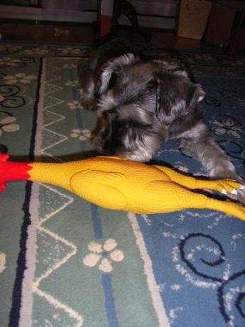 この間sebas chanさんのところで見かけたのと同じようなチキンのオモチャを発見し、早速ベガちんにお土産!! クンクン・・これはなぁに?? おもちゃだよ!! わ~~~い!!これちょ~~たのしぃ~~~数日後・・いもあんさんのところの紋ちゃんや、びーなすさんのところのるーちんが大好きな知育玩具・・結構教育熱心な私だったのね~~我家もペットボトルの中に大好物の豚のアキレスを入れて自分の力で出してもらおうとベガちんにあげたところ・・・ ????? 中から自分でオヤツをだしてごらん!! ・・・で・・できましぇん・・やっぱベガちんは頭脳派ではなく肉体派だったのですそれでこそ我家の一員だ!!!