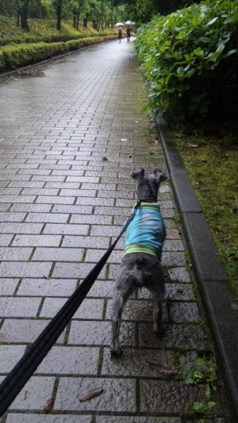 昨日の夜のお散歩雨が大ぶりでベガちんおしっこ1回だけですぐに家に帰ってきましたベガちんは家で排泄ができないくせに雨が大嫌い・・・雨降りの日は死ぬ気で我慢しています今朝も結構ふっていましたので散歩を近場で済ませようと私は傘もささずにカッパだけ着てお散歩に出たんですけど何を思ったかぐんぐん歩く歩く!!!結局、いつもの1時間半お散歩コースでしっかり公園でボール遊びもして更にプラス延長ルートを歩きクンクン臭いもかきまくりこんなにびしょびしょになるまでお散歩してしまいましたでもね・・今はこんなに良いお天気!!!お家で排泄できれば何も朝雨の中を散歩しなくてもこんな気持ちのいい空の下を歩けたのに・・・