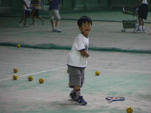現在、あっくんの通うテニススクールには、もえ、ぎっさん、そして私と家族がお世話になっている。先週、あっくんと差しで試合をした。結果、6-3、6-1で私の勝ち。自分も上手いとは思わないが、あっくんに負ける気がしない。それは、1.あっくんは凡ミスが多い。2.負け始めると精神的に弱く立ち直れない。この2点につきる。最初のゲームは、0-3と私が追い込まれて「ついに息子に倒される日が来たか」と覚悟していたのに、ちょっと、本気を出すと6ゲームを連取してしまった。精神的な弱さはどうしようもないのかな。来週は公式戦。どうなるか非常に不安である。