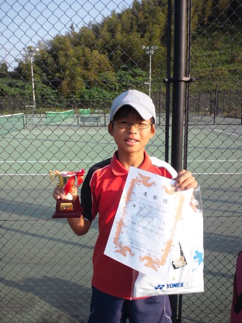 あっくんに先日、テニス試合で優勝しないと、テニスをやめさせると、引導を渡した今日この頃。金曜日にレッスンを見てみると・・・だめだめあっくんがいました。1 ダブルフォルトだらけ。これについては、口を酸っぱくして言っていますが。2 馬鹿うちをしている。勝負勘がない。3 負けて元々の精神。この3つで私がぶちぎれました。血管が10箇所ぐらい切れた模様。かえって、こってりと絞り上げました。「テニスの試合で勝とうと言う気がなければもうやめて結構。」あっくん涙。そして、次の日。以前、通っていたテニススクールで小学生対象の草トーナメントがありました。あっくんに忠告。「ここで無様な試合をしたらテニスをやめさせる」試合が始まる。リーグ戦の後、トーナメントが行われる。リーグ戦の1試合目は見ることが出来なかったが6-1で勝った模様。そして2試合目。生まれ変わったかのごとく、落ち着いた試合はこび。なんと6-0で勝利。いつもならば、必ずミスをして、1ゲームは必ず落としていたのに。。。どうなった、あっくん!!そしてトーナメント1回戦。6-2で勝利。終始落ち着いてました。次は準決勝。以前の決勝トーナメントで4-6で負けた相手。相手の動きによって集中力がなくなり0-3になった。もうだめかなっと思っていたら、なんと、6-3で逆転。以前ならば、きれて0-6ダウンだったのに。そして決勝。ショットが冴え渡る。サーブは入らなかったものの、6-4で勝利!!!初優勝です。よくがんばりました!!