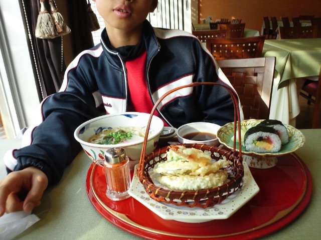 あっくんのテニスレッスンでよく使う「サンピア福岡」そこの天ぷらうどんがあっくん大のお気に入り!700円。といいつつ私は海鮮丼をいただく。1500円なり。おいしくいただきました。