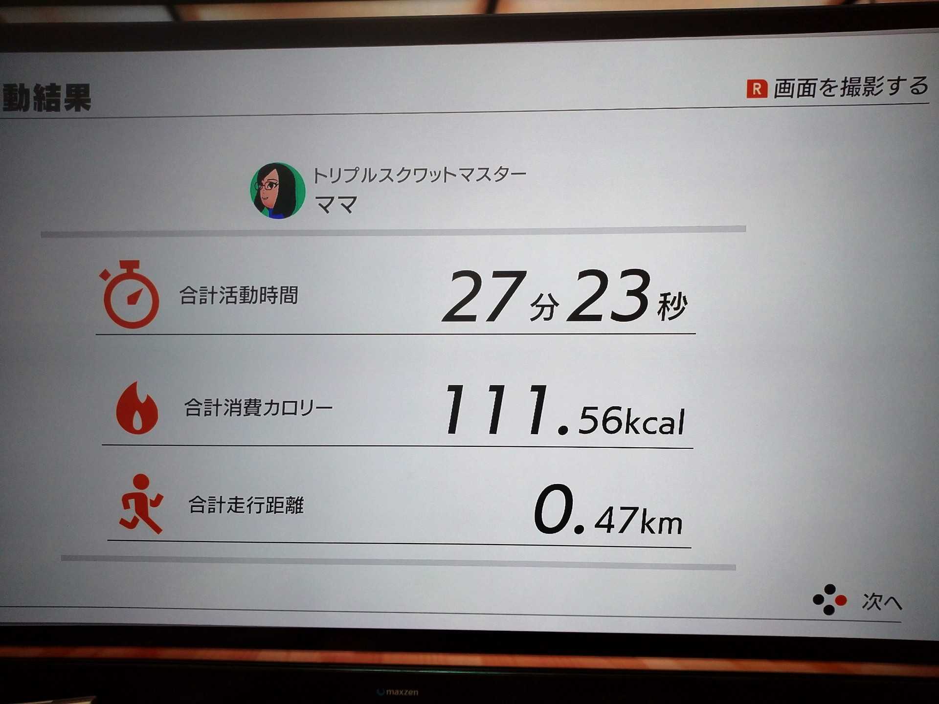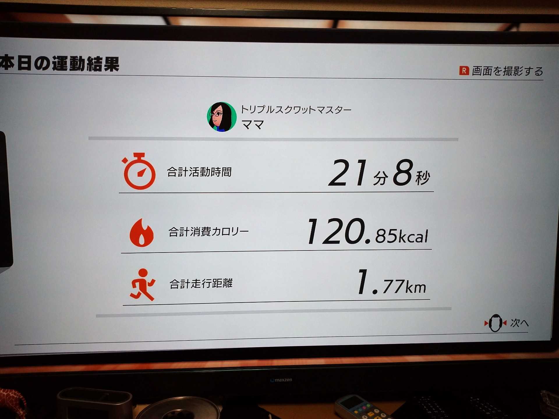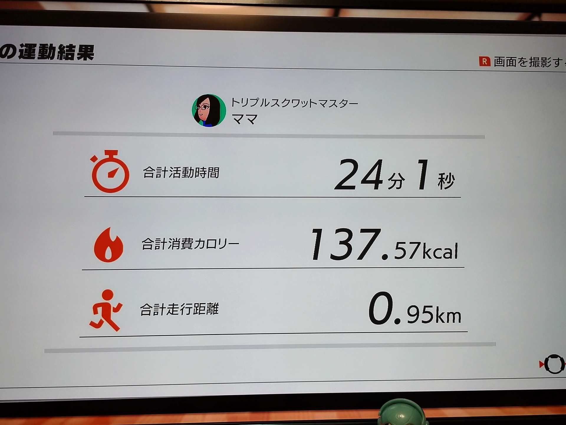 リングフィットの結果画面は一応毎回写真を撮っているのですが、 さぼりすぎて今更振り返っても…感が強く。 こちらはもう書けるときに書いて、書けなければ諦めることにしました。 お友達が9時に公園に連れて行って暑かった、と言っていたので、 それより早く!と08:30過ぎに出発して、近所の公園へ。 子供達を公園で遊ばせている間に、 家から500mくらいのところにあるコンビニに発送に行きました。 いつもは混雑を避けて夜中に行くのですが、夜出しても朝出しても お客様的には変わらないかな…と。 でも暑いし日焼けしそうなので、夜に戻そうと思います。笑 公園に戻ると、子供達はもう暑そうで。 もっと早い時間に来ることにして帰りました。 さてさて、リングフィットです。 先週一週間は筋肉痛のためお休みしていたので久しぶりです。 ボス戦、フィットネスジム、バトルジムなど走らないステージばかりでした。 夫がバーベルスクワットやダンベルスクワットを勧めてくるのですが、 前世で何かあったのかってくらいにそれらが嫌で… そもそも自重が重いんだから不要ではないかと。 引き締められるのは若いうち、と言われ、しぶしぶやろうか…でも嫌だ… (我が家にはダンベルはあります) と思いながら検索したら、強い負荷で少しやるのと、弱い負荷でたくさんやるのと、 結果はあまり変わらないというデータを説明している方の記事を見つけました。 ガッツポーズをして、ダンベルなしでいこうと決めました。笑