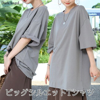 安い…(クーポン利用) ビッグシルエットは似合わないので買えませんが… <週末限定クーポン利用で500円>【福袋対象】Tシャツ レディース 半袖 5分袖 夏 ビッグシルエット ビッグT バックプリント ロゴT 大きいサイズ ドロップショルダー グレー ラウンドネック 【 ビッグシルエットTシャツ 】