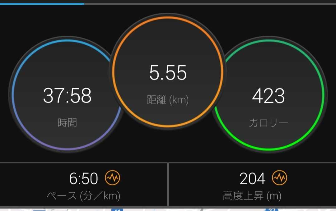 5.3~5.4kmだとは思ったのですが、迷ったせいで距離が伸びてしまい、