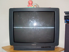 井上康生が敗れる…というニュースを見ていたら、画面が突然こんな風に。テレビ局の放送ミスか?ポルターガイストか? と思ったが、我が家の93年製ブラウン管テレビの故障であった…。その後しばらくしてつけるとなんと直っていた!が、しばらくすると画面が揺れ、そして一本線になり、勝手に電源が落ちる。お気に入りのビデオをかけろとSがしつこいので、かけてみて壊れていることを納得させようと思ったのだが、電源が落ちてもまた入れて、途中で切れると私のせいだと思うようで大怒り。いくら「テレビ壊れました」と言ってもダメなので、電源を抜いて場所を変えて強制終了。やっとあきらめた。後3年で使えなくなる…とはいえ、できればもう少し引っ張りたかったのだが、ブラウン管がいかれて修理すると5万だっていうし、さすがに買い換えだ。鉄塔による電波の難視聴地域なので、デジタル対応も光通信の最新のヤツ(まだ都会だけ)が来たらADSLから乗り換えようと思っていたり、ケーブルテレビと値段を比べようと思っているので、ひとまずはデジタルテレビを買ってアナログ対応…かな。矢沢のえいちゃんに怒られるけど。今年は給料が少ないぞ…と決定する日に出費が決まるなんてちょっと痛い。