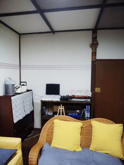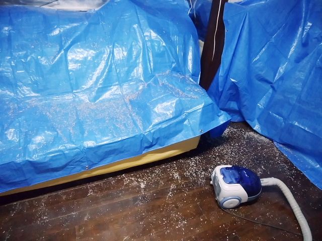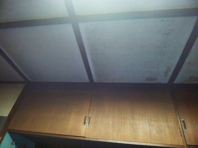 元キッチン(現リビングのち貸会議室w)だけ、急速に天井の塗装の劣化が進んでいた。Sが飛び跳ねると振動でハラハラ…と小さな白い破片が落ちてくる。これはダメだ…と思い考えた。