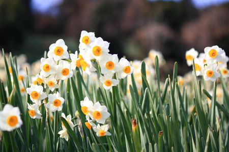 越前海岸(福井県)・房総半島(千葉県)と並び、日本三大水仙群生地のひとつにも数えられる淡路島。水仙が咲く時期には多くの観光客が淡路島に足を運び、一足早い春の息吹を感じ、温泉を愉しみ、そして新鮮な海の幸に舌鼓を打ちます。シーズン期間中は洲本温泉から「灘黒岩水仙郷」と「立川水仙郷」の2つの水仙郷を結ぶシャトルバスが運行し、気軽に楽しめる観光スポットとして人気を呼んでいます。甘く芳しい香りに誘われて・・・この冬は淡路島へ咲き誇る水仙を眺める旅に出掛けてみませんか?【灘黒岩水仙郷】“灘黒岩水仙郷”は、淡路島南部に位置する標高608mの諭鶴羽山の海に続く45度の急斜面の一帯、約7ヘクタールにわたって数百万本もの野生の水仙が風にそよぐ。展望台からはレモンイエローの水仙と穏やかなブルーの海とのコントラストが見事です。一重咲きの野生のニホンズイセンを中心に、わずかに八重咲きの花も混じり、遊歩道に導かれて可憐な花の間を縫って歩けばまさに白のじゅうたんの上を歩いている気分。◆開園期間:2014年12月26日(金)~翌年2月下旬(予定) ※2014年12月31日(水)は休園 ※2015年1月1日(木)は午前11時から開園◆入場料:大人500円 小人300円(小・中学生)◆営業時間:午前9時~午後5時◆駐車場:有り(無料)◆所在地:兵庫県南あわじ市灘黒岩◆問合せ 灘黒岩水仙郷:0799-56-0720 商工観光課:0799-37-3012 淡路島観光協会(南あわじ観光案内所):0799-52-2336【立川水仙郷】洲本市の南部、紀淡海峡を望む斜面に広がる水仙の名所。早春の光の中、白や黄色の日本水仙や欧州水仙が咲きそろい幻想的な風景をつくり出します。テレビで以前話題になった「淡路島ナゾのパラダイス」という、陰陽信仰や道祖神信仰にまつわる展示館「淡路秘宝館」も併設しています。◆開園期間:年中無休(水仙は12月下旬~翌年2月下旬が見頃)◆入場料:大人500円 小人300円◆営業時間:午前9時~午後5時◆駐車場:有り(無料)◆所在地:兵庫県洲本市由良町由良2877-22◆問合せ:0799-27-2653
