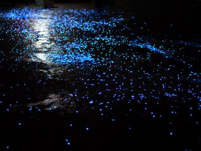 淡路島の自然を体験する『海ホタル観賞ツアー』。今年は10月・11月に南あわじ市の阿万海岸海水浴場で、そして来年は3月から5月にかけて南あわじ市の慶野松原海水浴場で、それぞれほぼ毎週、金曜・日曜に開催されます。山のホタルは見たことがあるよという方が多いと思いますが、海ホタルはあまりなじみがないもの。山のホタルを想像するとちょっと違うのですが、海ホタルは体長3ミリ程度のミジンコのような甲殻類です。水質が良く海底が砂地になっている場所に主に生息しています。この「海ホタル」を旅館に泊まって見に行こう!という淡路島ならではのイベントが『海ホタル観賞ツアー』です。海ホタルは、蓋に小さい穴を幾つもあけてエサを入れたビンに紐をつけ、海に投げ入れて捕獲します。その仕掛けを海から引き上げ、紐の先についたビンを振ると、中が幻想的な青に輝きます。青色の光の正体は、相手を威嚇するために分泌するルシフェリンという発光物質。夜光虫は体自体が光るのに対して海ホタルは発光物質を分泌するので、光が広範囲に「ボワ~ッ」と広がり、とても幻想的です。ツアーは洲本温泉の各旅館からバスへ乗り込み出発して、バスに揺られること約50分。到着後の20時30分から観賞会が開催され、全行程で約2時間半のツアーとなります。参加希望のみなさまはぜひ事前にご予約くださいませ。ご夕食は送迎バスに間に合うよう、早めにご用意させていただきます。海ホタル観賞会のご案内(PDF)≪海ホタル観賞ツアー≫■出発 洲本温泉19:30頃(所要時間は約2時間半です)■料金 対象施設に宿泊の方は無料(当館も対象です)■予約 各宿泊施設※送迎バスの座席数の関係でご予約できない場合がございます【観賞会スケジュール】●南あわじ市 阿万海岸海水浴場2019年10月…4(金)・11(金)・13(日)・18(金)・20(日)・25(金)・27(日) 11月…1(金)・3(日)・8(金)・10(日)・15(金)・17(日)・22(金)・24(日)・29(金)●南あわじ市 慶野松原海水浴場2020年 3月…20(金)・22(日)・27(金)・29(日) 4月…3(金)・5(日)・10(金)・12(日)・17(金)・19(日)・24(金)・26(日) 5月…8(金)・10(日)・15(金)・17(日)※新型コロナウイルス感染拡大防止および政府からの緊急事態宣言を受け、一部日程は中止となりました。※荒天時の場合は中止となりますので予めご了承下さいませ。※ツアー内容は変更になる場合がございます。