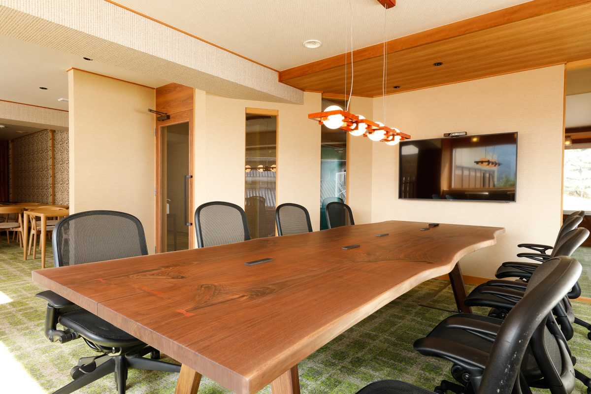 55型のモニターを備えた8人掛けのワークテーブルや、2人掛けの個別デスク、外の景色を眺めるカウンター席、4人掛けテーブルを備えた個室席など、目的にあわせて思い思いのスタイルでご利用可能です。少し疲れた時にはソファや屋外テラスに設置したデイベッドで休憩タイムも。コンセント付きUSBポートや無料Wi-Fiも完備しています。