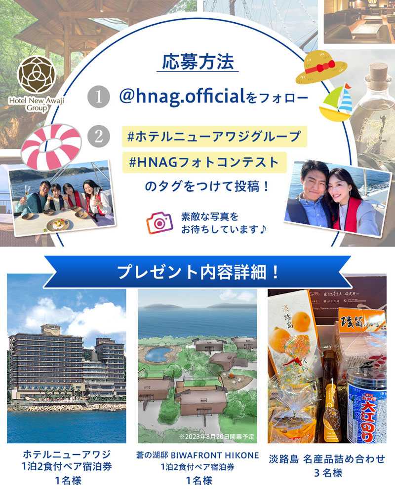 2. #ホテルニューアワジグループ #HNAGフォトコンテスト のタグをつけて投稿すること