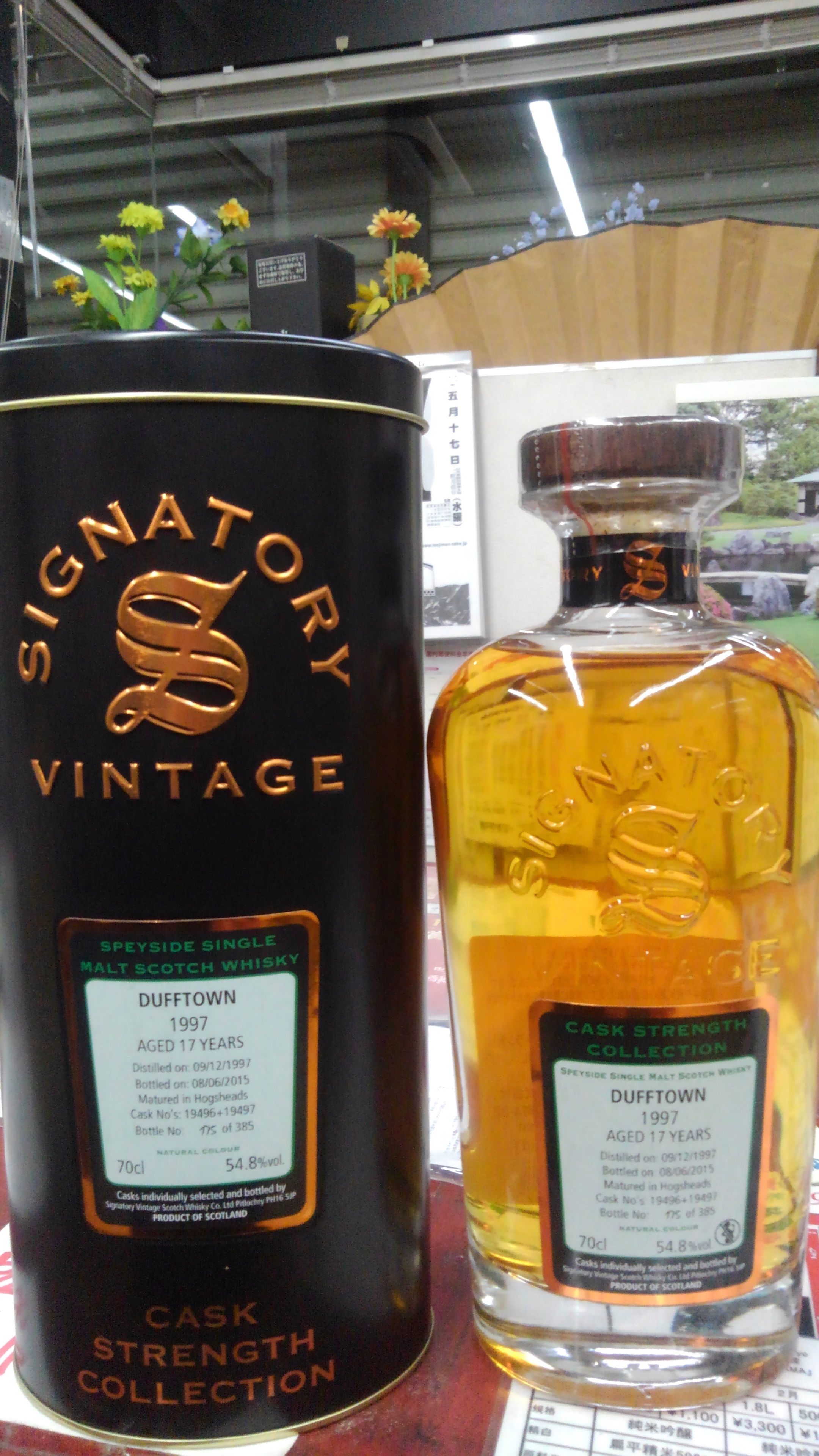 ダフタウン17年 1997 シグナトリー 54,8度 ほぼベルの原酒用にまわされるダフタウンの貴重な原酒をしかも人気のボトラーズ「シグナトリー」のカスクストレングスのウィスキーを試飲しました香りはアルコール感のツーンとするワックスのような刺激の中に甘い香りも混じる味わいは個人的には刺激が強い感じですがまったりとした甘さで若干の加水でアルコール感が程よくなりバランス良くなり美味しいですがあまり加水しすぎない方がベスト