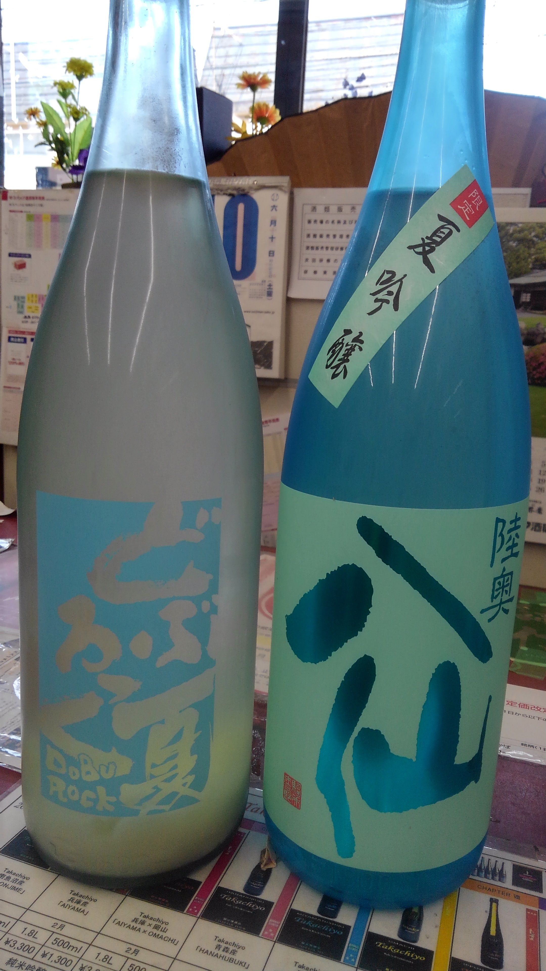 夏酒の人気商品青森県八戸市「陸奥八仙」夏吟醸 3024円そしてガス圧のあるシャンパン風清酒 夏どぶろっく 2700円