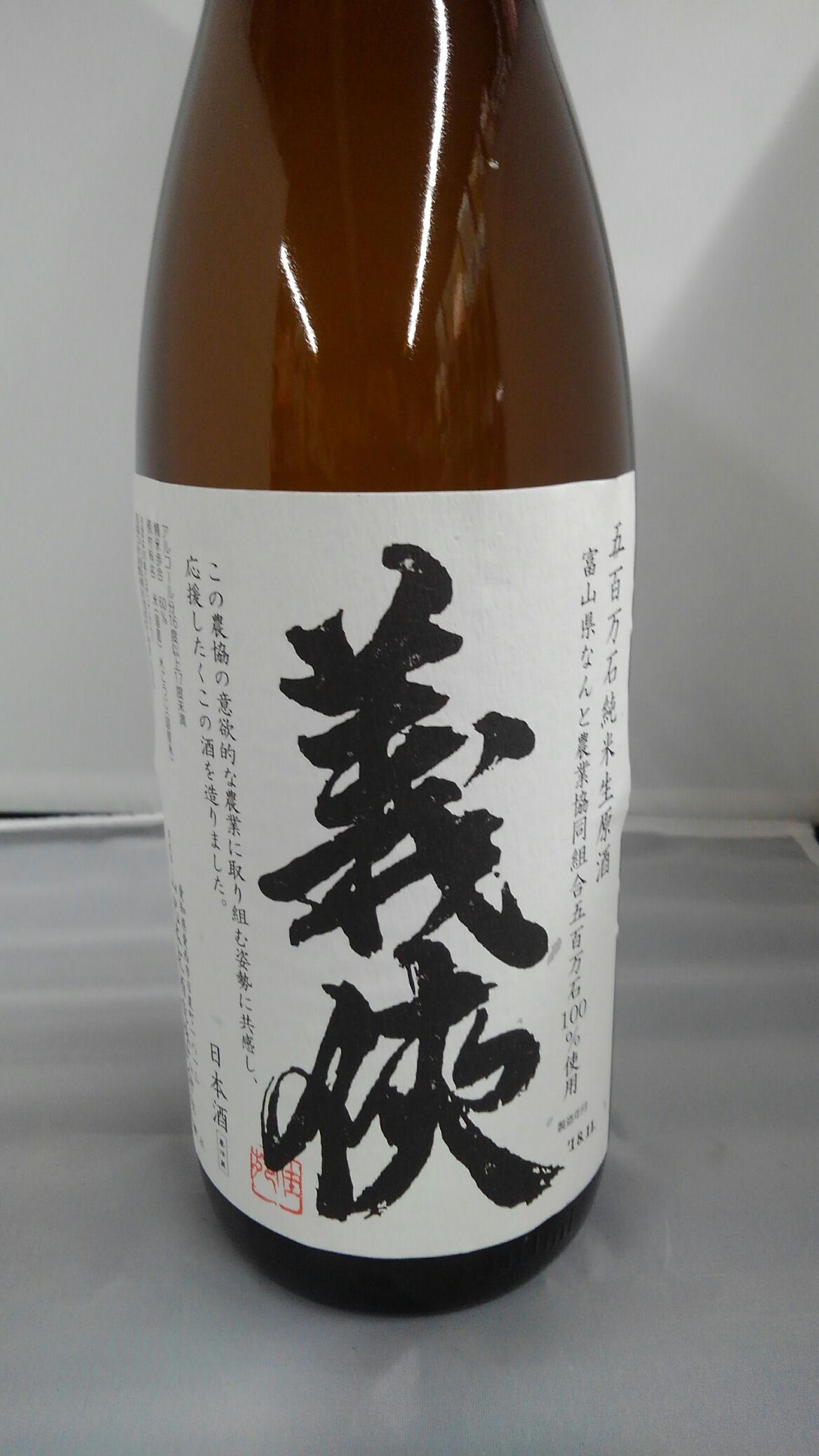 新酒が続々の入荷でアップが間に合いません~ごめんなさい愛知県 義侠 五百万石 純米生原酒 1,8L 2680円(税込)香りは抑えた米の旨味系の味わいで人気の義侠華やかな香りはちょっと・・・という方にはお勧めのお酒ですが以前は今以上にどっしりしていましたそんな義侠の新酒第1弾が入荷しました!!南砺産五百万石100%使用の60%精米のお酒