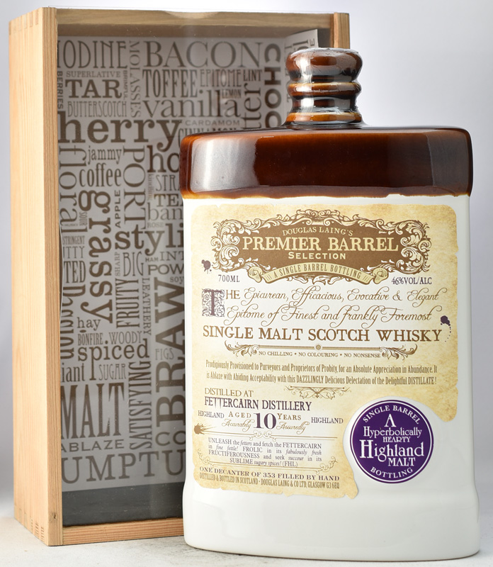 ダグラスレイン社プレミエバレル「フェッターケアン 10年」のご案内です。豊富な在庫を保有し、世界のモルトラバーを魅了し続けるダグラスレイン(DL)社。“古き良き時代”ビクトリアン朝を想定して、1851年頃に使用されていたセラミックデキャンタを復元した同社の人気シリーズ「プレミエバレル」。文字やラベルの端にも細やかな演出が施され、当時の雰囲気をよく表しているような趣ある器が目を引きます。このシリーズ、ボトルはさることながら、他にはない独特の丸みや、熟成年数以上の深みと旨みが凝縮しているとご好評をいただいております。これも陶器ボトルがなせる、不思議なワザと言えるでしょう。科学的に証明されているわけではありませんが、今回も神秘的な魅力をお試しいただければと思います。フェッターケアン 10年 / ダグラスレイン プレミエバレル 9570円(税込)容量:700ml 度数:46度