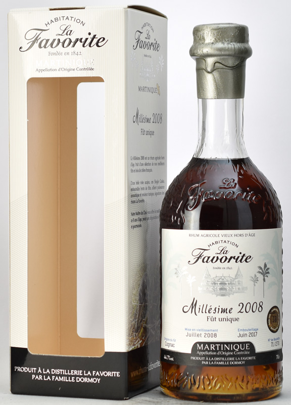 AOCマルティニークラムの中でも、ひときわ凝縮感のある甘みと濃い色合い、価格以上の価値をもったボリュームのある味わいを持つのが「ラ・ファボリット」です。家族経営による極少規模の生産者で、妥協なき品質へのこだわりが抜きん出た熟成品を生み出してきましたが、今回はセラーマスターが厳選したシングルカスクビンテージラムが届きました。コニャックの古樽で8年熟成されカスクストレングスで瓶詰めされた、美しいマホガニー色をしたこちら。香り高さとまろやかなタンニンを併せ持つエレガントなファボリットらしさ溢れる1本です。60本限定生産のため、当店への入荷も極少ですのでお早めに◇ラ・ファボリット ミレジム 2008 フュ ユニーク シングルカスク:700ml 44.7度¥15270(税込)先着順にて販売