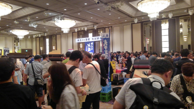 秋葉原から直ぐに大宮まで戻り初のパレスホテル開催しかも祭日開催で久しぶりに自分も参加し3時半に到着すでに4時からの一般の部の長蛇の列残り30分の業界の部に間に合い直ぐに入場とりあえず直取引のある「琵琶のささ浪」「亀甲花菱」のブースにあっという間に30分たち一般の人が人、人、人いや~凄い人「亀甲花菱」はさすが人気高いだけに順番待ちの列しかし社長一人で切り盛り聞くと「今日は皆用事あって・・」と手伝いますか?と言うと「のんびりやりますから大丈夫です」といつもの社長の優しい笑顔で当店のお客さんが今回は1組居まして挨拶しその後あまりの人の多さに直ぐに退散し帰路へそれにしてもイベントはいつもこれだけの人が集まるのですが・・・皆さん日常も日本酒を愛飲してくださいね~とお願いしたいと思います