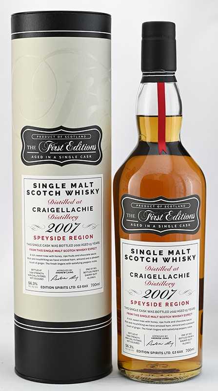 オールド・モルト・カスク=OMC」シリーズで有名なハンターレイン社の子会社で、アンドリュー・レイン氏が手掛ける「エディション スピリッツ社」。同社のメインブランドである「ファースト エディションズ」シリーズは、「初版」を意味し、有名な著者の本などでは、その初版にプレミアが付くことがあり、そのように評価されプレミアが付くようになりたいとの思いから生まれました。今回は、実力派モルトとして近年人気が上昇し続ける2種の銘柄が同時限定入荷!本家ハンターレイン社メインブランドのオールド・モルト・カスク(OMC)シリーズは、通常50%となっていますが、これはカスクストレングスバージョンで、選りすぐりのハイパフォーマンスアイテムを楽しめると、モルト愛好家から新商品は常に注目されているブランドとなっております。蒸留所の個性と個性的な樽が融合し、とても魅力的などちらのボトルも数量限定につき、お見逃しないよう、クレイゲラヒ 2007 15年 シェリー / エディション スピリッツ ファースト エディションズ700ml 56.3度 18900円(税込)生産本数:561本 カスクタイプ: シェリーバット<テイスティングノート>ハニー、熟したフルーツ、チョコレートソースのふくよかで甘い香り。スモークハム、アーモンド、ジンジャーの豊かな風味が口いっぱいに広がる。ペッパーの心地よさがいつまでも続くフィニッシュ。 グレンゴイン 2007 15年 ワインフィニッシュ / エディション スピリッツ ファースト エディションズ 700ml 55.3度 19980円(税込)生産本数:291本 カスクタイプ: ワインバレル<テイスティングノート>ココアパウダー、赤い果実、キャラメルのリッチでパワフルな香り。口に含むと、赤い果実が更に感じられ、同時にトフィー、ほのかなタバコの香りが広がり、少しペッパーの効いた長いフィニッシュへと続く。