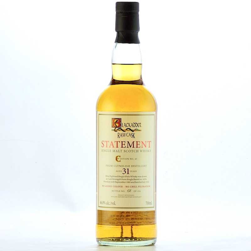 ブラックアダー ステートメント NO.45 ロウカスク クライネリッシュ 1989 31年 46.8% Cask Ref 6094 46.8% 700ML ¥129,360(税込 絶大な人気を誇る、北ハイランドのクライネリッシュが再入荷いたしました。 希少な80年代ボトルがステートメントから登場です。 大半がジョニーウォーカーゴールドやブラック&ホワイトの原酒として使われるため、シングルモルトとして出回る本数は多くありません。 シルキーでワクシー、豊潤な甘みが特徴で、ボトルを見つけたら必ず手に入れるというマニアも多数。 特徴的な蜂蜜、フルーツタルトのような甘さが長い熟成でさらに濃密に。 30年を越す長期熟成でも、その魅力を失うことなくこの上なくリッチな味わいに仕上げていくのは、ブラックダーの卓越した樽管理と見極めの技。マニア垂涎のボトルが入手できる機会をどうぞお見逃しなく。 【テイスティングノート】 香り:革、蜜の入ったリンゴ。かすかに紅茶の茶葉のようなほろ苦い香り。 味わい:クリーミーで蜜蝋のようなワクシーさ。グアバ、アプリコット。ウエハース、僅かにミネ ラル感。 余韻:コクのある濃厚な余韻、舌の上に砂糖漬けのオレンジピールがほんのりと残る。 生産地域:スコットランド・ハイランド 蒸留所名:クライネリッシュ 樽の種類:ホグスヘッド 蒸留時期:1989年9月26日 瓶詰時期:2021年7月 瓶詰本数:194本 輸入本数:12本