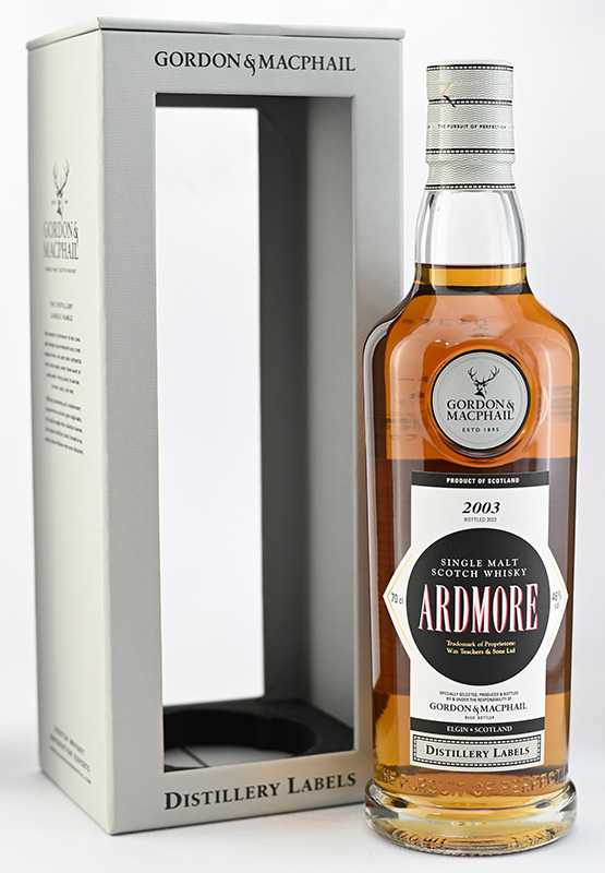 <ゴードン&マクファイル社 蒸留所ラベル>アードモア 2003 700ml、46% 22800円(税込) 入荷60本 2022年ボトリング(ラベルに記載) CASK TYPE:Refill Sherry Casks (ラベルに記載ナシ)カスクタイプ:リフィルシェリーカスク COLOUR: DARK GOLD外観:ダークゴールド香り:甘い黒スグリがリコリスやフレッシュミントの葉に変わる。レモンピールとジンジャースパイスから甘いスモークへ。味わい:煮込んだラズベリーの後から滑らかなオレンジピールを感じる。かすかなブラックペッパーを伴った焼きリンゴ。 フィニッシュ:オークやサマーベリーを伴ったたっぷりとしたフィニッシュ。
