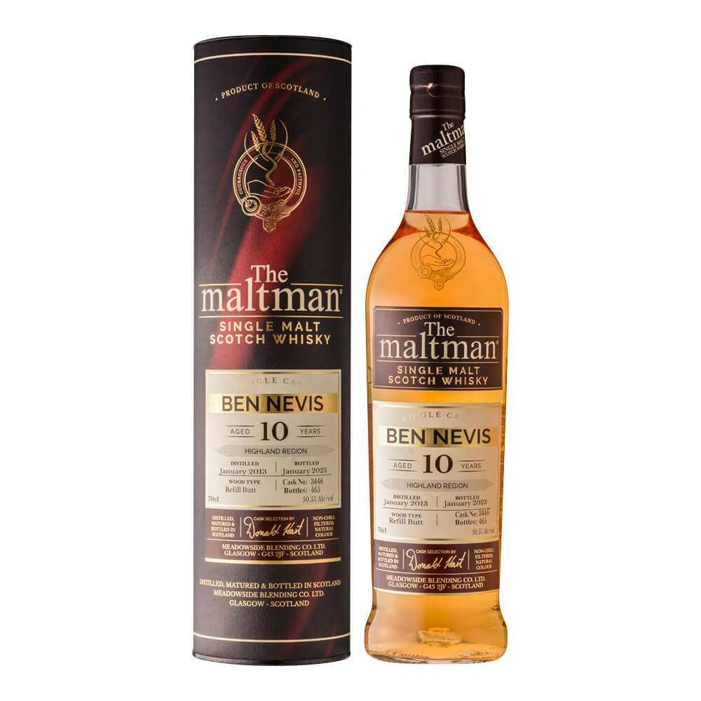 名ブレンダーとして、数々のウイスキーをプロデュースしてきたドナルド・ハート氏と息子でありゼネラル・マネージャーのアンドリュー・ハート氏と一緒にボトラーズブランドを創業。その類まれなるブレンダーとしての経験と情熱は、数あるボトラーズ中から高い評価を受け上質の樽選びによるクオリティーで、数々の賞を受賞しています。モルトマニアから絶大な人気を誇るシリーズ ザ・モルトマン ベンネヴィス 2013 10年 リフォルバット50,5度 700ML 16900円(税込) 【テイスティングコメント】香り:オレンジピール、トーストしたアーモンド、ココナッツ。味わい:トフィー、マンゴー、ミルクチョコレート、熟したバナナのようなフルーティーさ。フィニッシュ:シルキーで滑らか。桃の缶詰やライチのようなフルーティーさが再度現れる。
