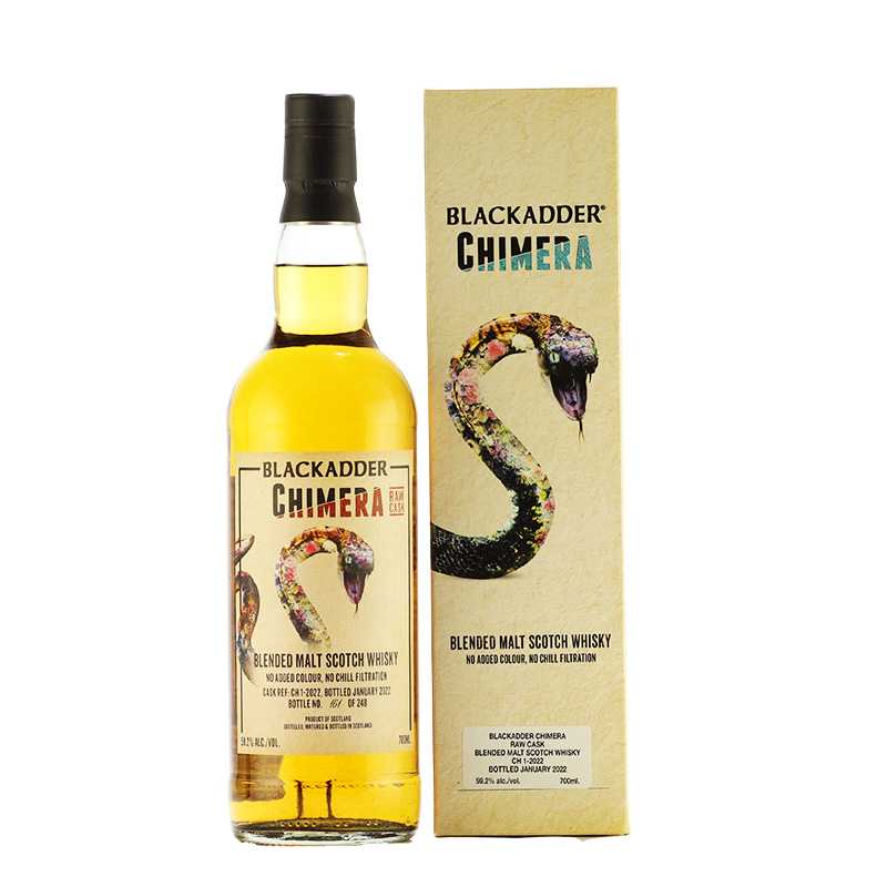 ブラックアダー ブレンデッド モルト スコッチ ウイスキー キメラ Cask Ref: CH 1-2022 59.2% 700ML 15591円(税込) ブラックアダーが保有する樽の数々から、複雑なブレンドを重ねて誕生するキメラシリーズ最新作。 ロウカスクならではのパワフルな仕上がりは、ブレンデッドモルトでも衰えることはありません。ダークチョコレートのようなほろ苦さと、リンゴや洋ナシのフルーティさ。かすかなスモーキーさも感じられ、探究心がくすぐられるほど奥行きのあるアロマです。あらゆる生き物の長所を掛け合わせて生まれたキメラのように、優れたスコッチの要素が盛り込まれています。シングルモルトにこだわる方にこそ、一度お試しいただきたいボトルです。 【テイスティングノート】 香り:最初にシリアルの穀物感、コーヒーパウダー、湿った倉庫。香りが開くにつれ、熟したリンゴと洋ナシのコンポートが現れる。 味わい:クローブやナツメグなどのスパイスに、焼きたてのパン、グレープフルーツ、ほのかにミントティー。 余韻:オーク由来の温かいウッディさ、遠くの暖炉、ベリー系のフルーツとともに黒コショウのアクセント。 生産地域:スコットランド 樽の種類:ホグスヘッド 瓶詰本数:248本 輸入本数:90本