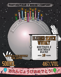 ブログアップ即完売いたしました御了承くださいブティックウイスキーカンパニー10周年記念ボトル 46度 500ML 5900円(税込)同社の10周年を記念して日本向けに限定リリースされた ウイスキーブティックウイスキーカンパニー(That Boutique-y Whisky Company)は、シングルモルトやグレーン、ブレンデッドなど、世界の素晴らしいウイスキーを提供するインディペンデントボトラーです。ラベルには蒸溜所にちなんだ面白いストーリーやジョークなどが楽しいイラストで描かれた特徴あるグラフィック・ノベルスタイルです。ブティックウイスキー バースデーブレンデッド10年は同社の10回目の誕生日(10周年)を記念して、特別に詰められたブレンデッドウイスキーです。25年熟成のアイラモルト1種とエジンバラでつくられた10年熟成グレーン1種がブレンドされています。香りは甘く、バターのような穀物、レモンクリーム、グリーンメロン、ブラックペッパー、ビーチのキャンプファイヤーの煙が潮を引き連れてほのかに広がります。味わいはジューシーなフルーツガム、熟したパパイヤ、ライムの皮、ブラックペッパーやライ麦パンのスパイシーさも感じられます。フィニッシュにかけて塩をひとつまみ加えた優しいピートスモークが加わり、心地よい余韻が続きます。長熟アイラモルトを使用した贅沢かつ圧倒的コストパフォーマンスを誇るブレンデッドです。【限定340本】