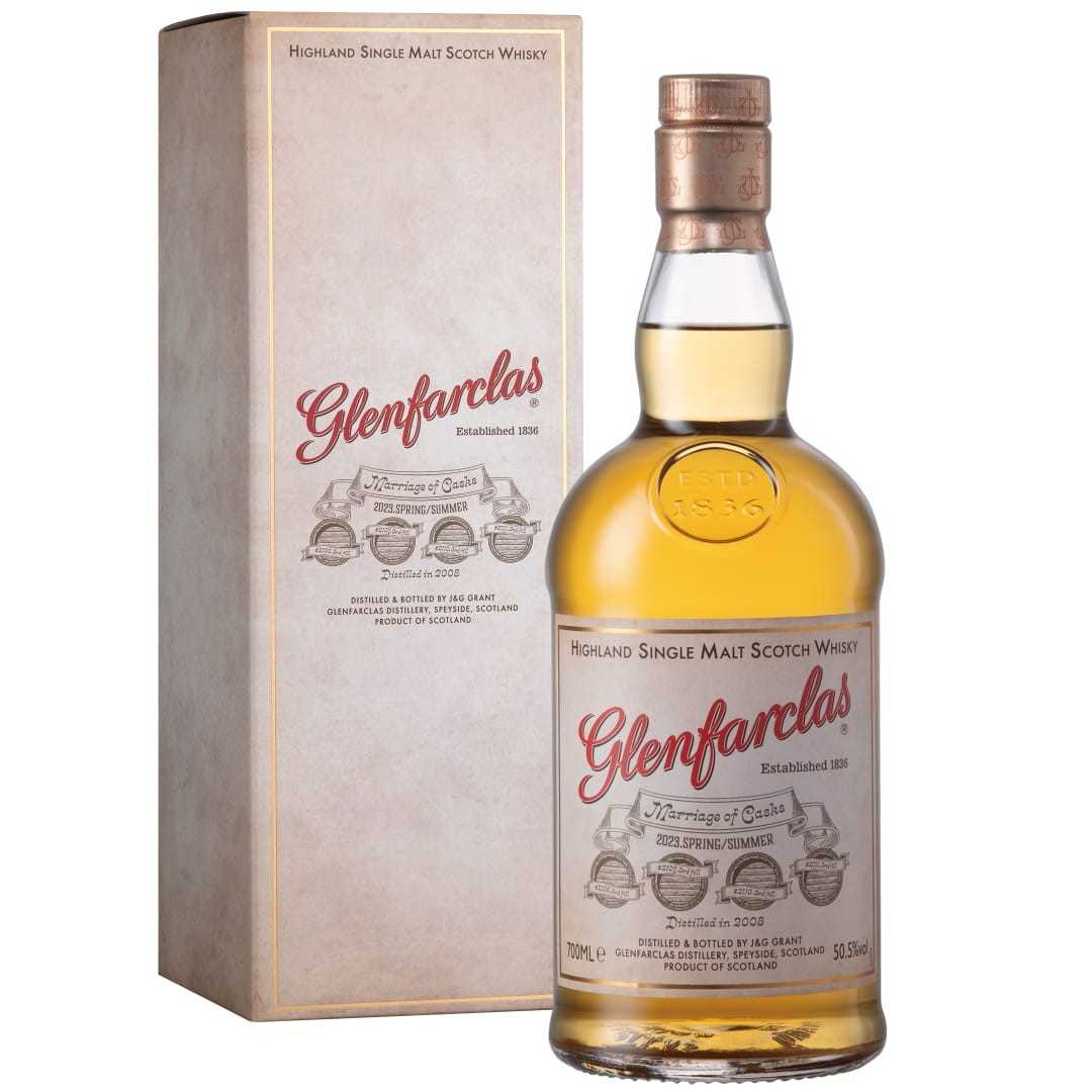 グレンファークラス マリアージュ・オブ・カスクス2023 Spring/Summer 50,5度 700ML 17600円(税込)・蒸留年:2008年・ヴァッティングカスクスペックNo.2106 3rd Fill Sherry ButtNo.2107 3rd Fill Sherry ButtNo.2110 3rd Fill Sherry ButtNo.2111 3rd Fill Sherry Butt・⽣産本数:1,800本「マリアージュ・オブ・カスクス」第1弾としてリリースするのは、グレンファークラスの原酒の個性を楽しむリフィルシェリー樽熟成に特化したアイテム。グレンファークラスの原酒のこだわりは、ノンピートモルト、長時間発酵、直火焚き蒸留によるフルーティーかつ力強い味わい。リフィルシェリー樽熟成によって、原酒の特徴をしっかり感じつつ、穏やかなスパイシーさとライトでスムースなシェリーのニュアンスが楽しめます。「マリアージュ・オブ・カスクス」シリーズ季節に合わせたコンセプトの下、春夏(SPRING/SUMMER)バージョンと秋冬(AUTUMN/WINTER)バージョンの年2回のリリースを予定。◆春夏(SPRING/SUMMER)バージョン…リフィル樽を使⽤し、グレンファークラスが持つフルーティーかつ⼒強い原酒の味わいにフォーカス。オンザロックやハイボールで。◆秋冬(AUTUMN/WINTER)バージョン…1stフィル樽をメインに、オロロソシェリー樽熟成の濃厚な味わいにフォーカス。ストレートやトワイスアップで。