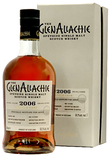 日本向けシングルカスク『グレンアラヒー2006 オロロソシェリーパンチョン』★グレンアラヒー蒸溜所アベラワーの町の郊外に1967年に設立された蒸溜所です。これまでブレンデッドウイスキーへの原酒供給をメインに行っており、シングルモルトとしては極めて希少な銘柄でした。シングルモルト界の伝説的プロデューサー、ビリー・ウォーカーが、「グレンアラヒー」の可能性を見出し、2017 年、グレンアラヒー蒸溜所は大手メーカー傘下から独立を果たしました。 グレンアラヒー2006 オロロソシェリーパンチョン 59.2% 700ml 26900円(税込)【限定数:701本】 オロロソシェリーパンチョンNo.1406 蒸溜:2006年4月19日瓶詰:2022年6月 オロロソシェリーパンチョンの16年熟成です。日本市場向けのシングルカスクで、カスクストレングスボトリングです。 色はチェスナットブラウン。グラスに注ぐとシナモンの効いたハチミツ、トフィーソースが広がり、ジンジャー、オレンジ、シロップで煮た洋ナシも感じられます。口に含むとヘザーハニー、ドライアプリコットの味わいが広がり、ジンジャー、ナツメグといったスパイスが混ざり合います。奥からゆっくりとバナナやいちじくが姿を現し、フィニッシュにシナモンが加わります。 オロロソシェリー樽熟成らしいフルーツとスパイスが調和した味わいが楽しめるシングルカスクです。ぜひこの機会にお楽しみください。