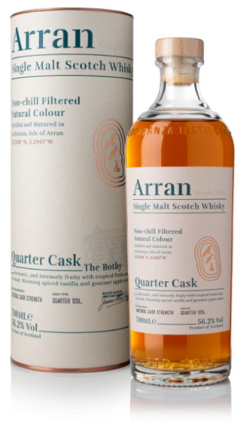 「アラン クオーターカスク」小樽による熟成感+カスクストレングスのダイナミックな味わい ★ロックランザ蒸溜所(旧アラン蒸溜所)Isle of Arran Distillers社所有の蒸溜所で、1995年にスコットランド・アラン島のロックランザ村に誕生。昨今世界各地で産声を上げているクラフト蒸溜所のパイオニアとして知られており、小型の4基(2対)の蒸溜器で丁寧に蒸溜を行っています。 アラン クオーターカスク 56.2% 700ml 6980円(税込) バーボンバレルで7年間熟成後、125リットルのクオーターカスク(小樽)で2年間追加熟成し、カスクストレングスでボトリング。 色は輝きのあるゴールド。香りはアップルタルト、パイナップルブリオッシュ、バニラ、ココナッツ。味わいはシトラスを基調に暖かみのあるシナモンや甘いバニラが広がり、ハチミツ、パイナップルが続きます。 小樽で追加熟成したことで、オークのスパイシーな味わいを一層お楽しみいただけます。 「ザ・スコッチウイスキー・マスターズ2023」ハイランド&アイランズシングルモルトノンエイジステートメント部門にて最高賞「マスター」を受賞!