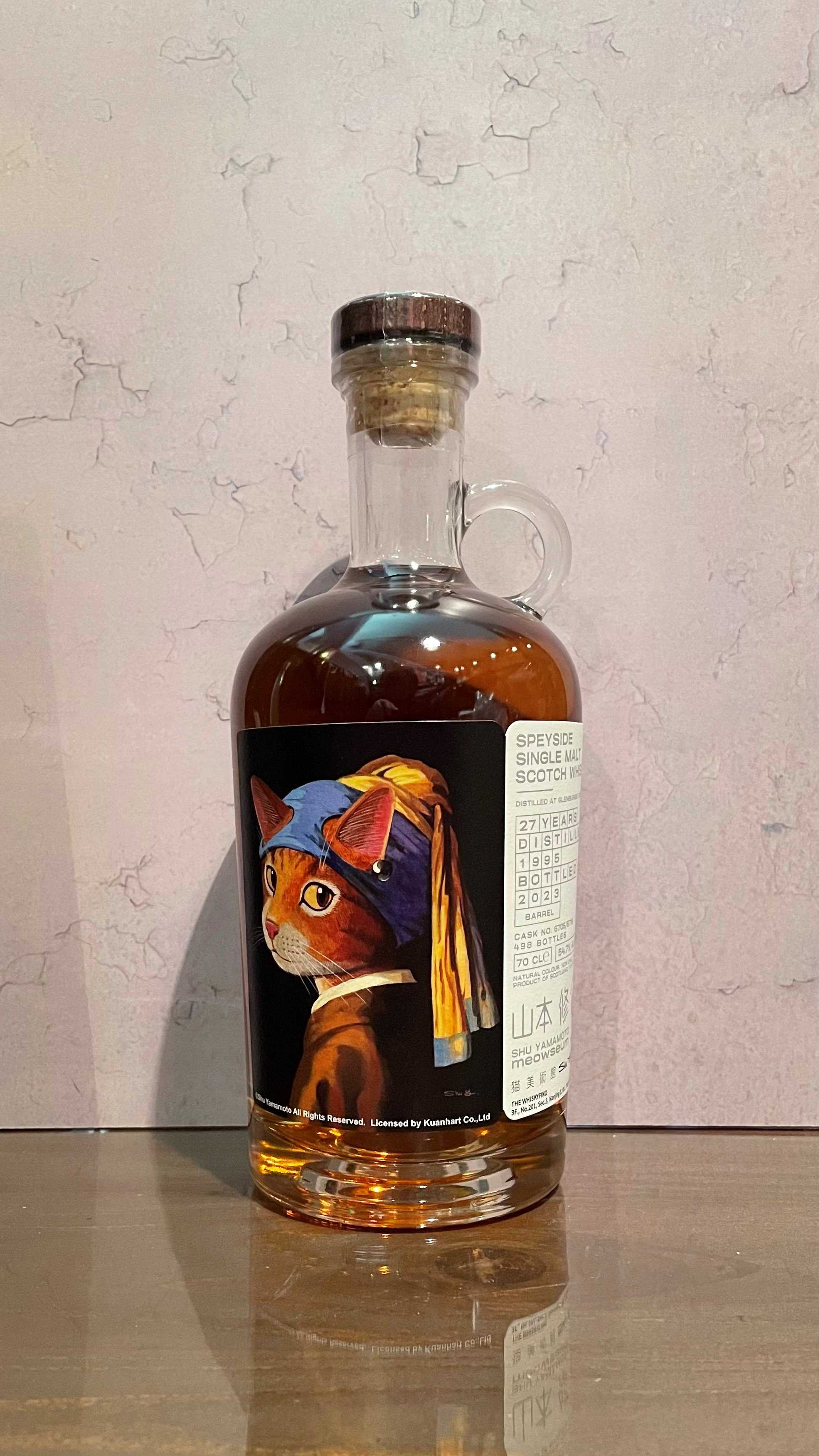 ミャオジアムより「グレンバーギー1995 27年」。ウィスキーファインドにて同ビンテージの樽を2樽バッティングしました。「Meowseum - The Kitty with the Pearl Earring Glenburgie 1995 27yo」 54,7度 700ML 60500円(税込)・Distilled: 1995 ・Bottled: 2022・Cask Type: Barrels ・Cask No.: 6705, 6718・本数:498本 ・輸入:120本このラベルの元になった絵画「真珠の耳飾りの少女」は、オランダの画家フェルメールの代表的な作品の1つ。ミステリアスな光と影、深く情熱的な瞳と魅惑的な唇、輝く真珠の耳飾りと鮮やかな青色のターバン。少女はとてもシンプルにもかかわらずエレガントに、謙虚にもかかわらず煌びやかに見えます。 この素晴らしき絵画に相応しいウィスキーのため1本のため、グレンバーギー1995を2樽ミックスしました。そして、多くのフローラルとフルーツフレイバーによって構成された美しき余韻を持つ、謙虚かつ煌びやかなウィスキーがここに生まれました! ~テイスティングノート~・Nose:ネクター、バニラの種、メロン、フローラル、オイリー、ジャスミン蜂蜜ティー、甘いオレンジ ・Palate:リッチ&フルーティー、ジャスミン蜂蜜ティー、ピーチ、パッションフルーツ、オイリー、まろやか ・Finish:パッションフルーツ、蜂蜜ティー、アプリコット、ワクシー、フローラルとフルーティーフレイバーの長い余韻
