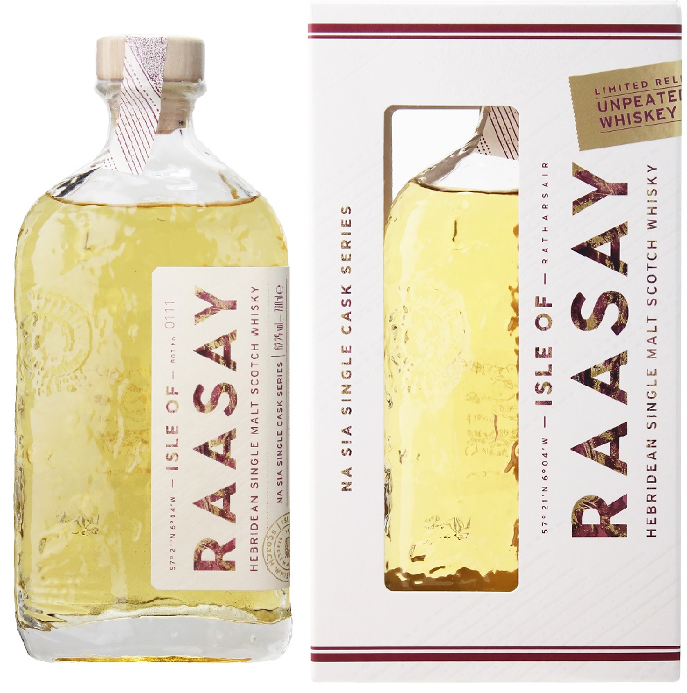 アイル・オブ・ラッセイ ナ・シア シングルカスク ライノンピートアイル・オブ・ラッセイ蒸溜所は、ノンピートとピート(約50ppm)2種の麦芽と個性的な樽3種を掛け合わせた、味わいの異なる6種類の原酒のつくり分けが特徴。この6種類の原酒はゲール語で「6つの樽」の意味する「ナ・シア(NA SIA)」と呼ばれ、大切にされています。今回は、特に味わいの良い2樽を厳選してシングルカスクとしてリリースいたしました。これはノンピート原酒をウッドフォードリザーブ蒸溜所のライウイスキー樽で熟成したもの。コアレンジ「ヘブリディアンシングルモルト」の土台や基礎を担う原酒とされています。【商品詳細】「アイル・オブ・ラッセイ ナ・シア シングルカスク ライノンピート」62.2% 700ML 13200円(税込)日本入荷総数:241本(コメント)ブラックペッパーのようなスパイシーなフレーバーと、バタースコッチやバニラの豊かな甘さが広がります。 アイル・オブ・ラッセイ ナ・シア シングルカスク チンカピンノンピートこの「チンカピンノンピート」は、ノンピート原酒を特別に製樽したチンカピンオーク材の新樽で熟成したもの。樽は天日乾燥した材を使用し、ハイトースト&ハイチャーで仕上げていて、よりリッチで甘みのあるフレーバーが楽しめます。【商品詳細】「アイル・オブ・ラッセイ ナ・シア シングルカスク チンカピンノンピート」61.5% 700ml 13200円(税込)日本入荷総数:253本(コメント)香りはトフィーやバタースコッチのようなしっかりとした甘み、味わいはフレッシュなダークフルーツや赤スグリ。ジンジャー、ヘザーハニー、シリアル。———————————————————————————アイル・オブ・ラッセイ蒸溜所とはラッセイ島は、スカイ島と本島の間にある人口161名の小さな島です。古くはジャコバイトのボニー・プリンス・チャーリーが逃げのびた地として知られ、20世紀には鉄鉱山もありましたが、今はスコットランドらしいのどかな自然の広がる島です。2017年、アラスデア・デイ氏は共同経営者とともに、この島に「アイル・オブ・ラッセイ蒸溜所」を設立しました。すでに曽祖父の残したレシピを基にブレンデッドウイスキーブランドを復刻していたデイ氏は、ブレンダーならではのウイスキーづくりを実践しています。スコットランドではめずらしい硬水を仕込み水に使い、蒸留器はフリッリ社のオーダーメイド。クリアで雑味の少ないニューポットにするため、後留(テール)を大胆にカット。熟成には上質な3種の樽を使い、奥行きのある複雑なウイスキーに仕上げています。—————————