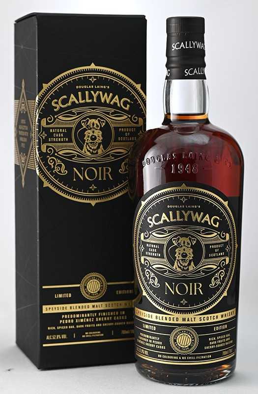 ダグラスレイン社のブレンド技術のすべてを詰め込んだリマーカブルリージョナルモルトシリーズ。マッカラン、モートラック、グレンロセスといったシェリー樽熟成を経た際に最大限の魅力を発揮する原酒が中心のブレンデッドウイスキーで愛くるしい犬のラベルは軽やかで、どこか気持ちを陽気にさせてくれる、上質な甘みが特徴の「スカリーワグ」。 今回、ご案内させていただく商品「スカリーワグ ノワールエディション」は、シェリーの中でもペドロヒメネス樽に絞ってフィニッシュをかけています。 ベルベットのような深い甘味とスパイスの香り、一口飲むごとにその謎めいた複雑さが解きほぐされ、ダークチョコレート、シェリー漬けのレーズンが口中で囁き合う世界へと奥深く引き込まれていきます。フィニッシュは長く、ハチミツ、熟したイチジク、ブラックチェリーが耽美的。スカリーワグのダークな一面の魅力を存分にお楽しみいただけるボトルとなっております。お見逃しのないようお願いいたします スカリーワグ ノワールエディション / ダグラスレイン ブレンデッドモルト容量:700ml 度数:52.8度 12700円(税込)