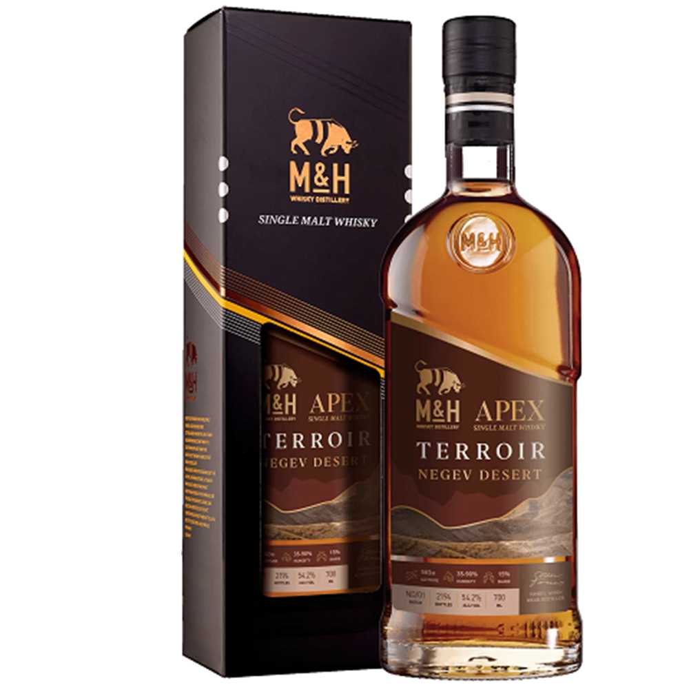M&H APEXテロワールネゲブ砂漠 54,2度 700ML 14980円(税込)ex-バーボン75%、STR10%他 「APEX テロワール」は、熟成地の気候や地理的条件がウイスキーの味わいにどのような影響を及ぼすのかを探る革新的な新シリーズです。イスラエル国内の様々な印象的な場所で熟成を行い、それぞれの土地の個性がどのように反映されるのかを探る大胆な試みとなります。 本来はワインの用語である「テロワール」をウイスキーに応用した例は過去にも存在しますが、1つの蒸留所が同時に複数の場所でその風土や地勢・気候が味わいにどのように表れるのかを比較体感出来る形でリリースした例はほぼ存在しないと思われます。 イスラエル南部に広がるネゲヴ砂漠の暑く乾燥した昼の世界は、夜になるとアラドの丘陵地帯でもあるという地勢によって肌寒さを覚えるほどに冷え込みます。APEXテロワールシリーズの1つとして新登場となる「ネゲヴ砂漠」の樽はこの日較差により毎日膨張と収縮を繰り返しながら砂漠の激しい環境による早熟と高地特有の穏やかな熟成という相反する要素を兼ね備えるという奇跡をもたらしました。そのモルトは繊細ながらも豊かな風味を持ち、他のエリアでは得られない、砂漠のようにドライでクリアなフルーティーさが特徴です。熟成期間は約4年となります。 バッチナンバーND/01。テロワール情報としてエンジェルズシェア15%、気温2~40℃および湿度35~90%(1年の変動値)、標高563m、総ボトリング本数2194本(日本初回入荷54本)。 M&Hテイスティングコメント香り:繊細で優美なナッツ、ダークチョコレート、ドライフルーツの調和した香り味わい:ドライでフレッシュなフルーツと赤いベリーの弾けるような味わい フィニッシュ:フレッシュなベリーとドライフルーツが、マシュマロの柔らかなニュアンスと出会い、短くもクセになる余韻を残す