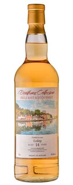 「決して、裏切らない品質の一樽を厳選。」日本の先駆けボトラーズシリーズとして、ブランドがスタートしてから20余年を数え数多くのシングルモルトの秀逸の一樽をリリースしてきた「ディスティラリーズ・コレクション」。ブランドの「銘柄の知名度や価格の大小に囚われず、真に味の良いものだけを選りすぐる」。隠れた名酒を発掘してきた信頼の人気ボトラーズシリーズ。原画は画家の佐藤英行氏による描き下ろし。ディスティラリーズ・コレクションレダイグ 2007 14年 バーボンカスク 53.4% 700ml 23,760円(税込)【テイスティングコメント】香り:針葉樹の青々とした香りに、焚き火の燃え殻のような乾いたスモークが重なる。そこにゼラニウムのほのかなフローラルが加わり、力強さの中に繊細さを感じさせる。味わい:ドライな口当たり。スモーキーさが軸となり、塩気のあるパンチェッタや海藻の旨味が深みを添える。かぼすやシトラスソルベのような爽やかな酸味が絶妙に調和し、複雑かつ鮮やかな味わい。余韻:黄色い果実の甘やかな余韻に、白煙のスモーキーさがやさしく残る。ハーブを思わせるビターさが後を引く。